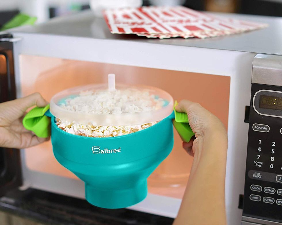 This microwave popcorn popper makes a delicious snack without harmful chemicals or fake butter (yuck!), just popcorn and air!