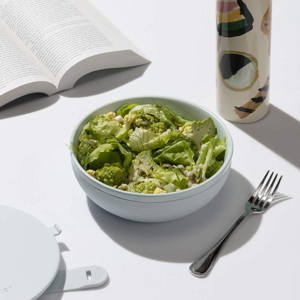 I love bringing my lunch to work in this ceramic salad bowl. There’s a silicone strap that keeps it securely shut so nothing ever leaks in my lunch bag.