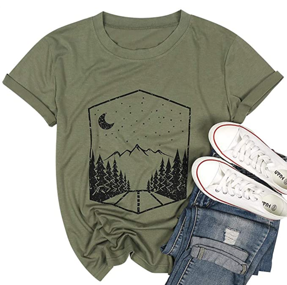 A cute graphic tee is a must-have for any closet — and personally? This one is my favorite. I don’t even enjoy camping, but I still like to layer it underneath a flannel. And since it’s made from soft cotton, you can easily wear it all day, all night — and maybe even into tomorrow morning.