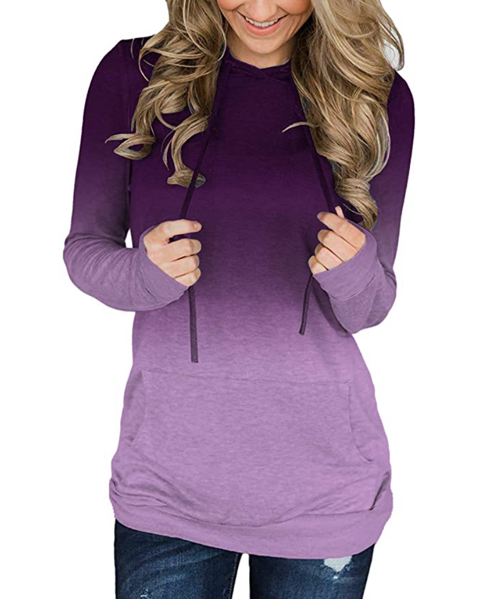 On days where you’re feeling a hoodie but it’s too warm outside, pull this one out of your closet. It’s ultra-lightweight so that you can wear it all year long, and the beautiful gradient color will make it stand apart from the crowd if you decide to wear it out on the town. Wear it with leggings, jeans, joggers — or even a pair of shorts.