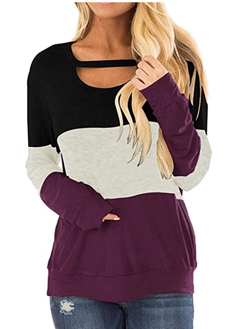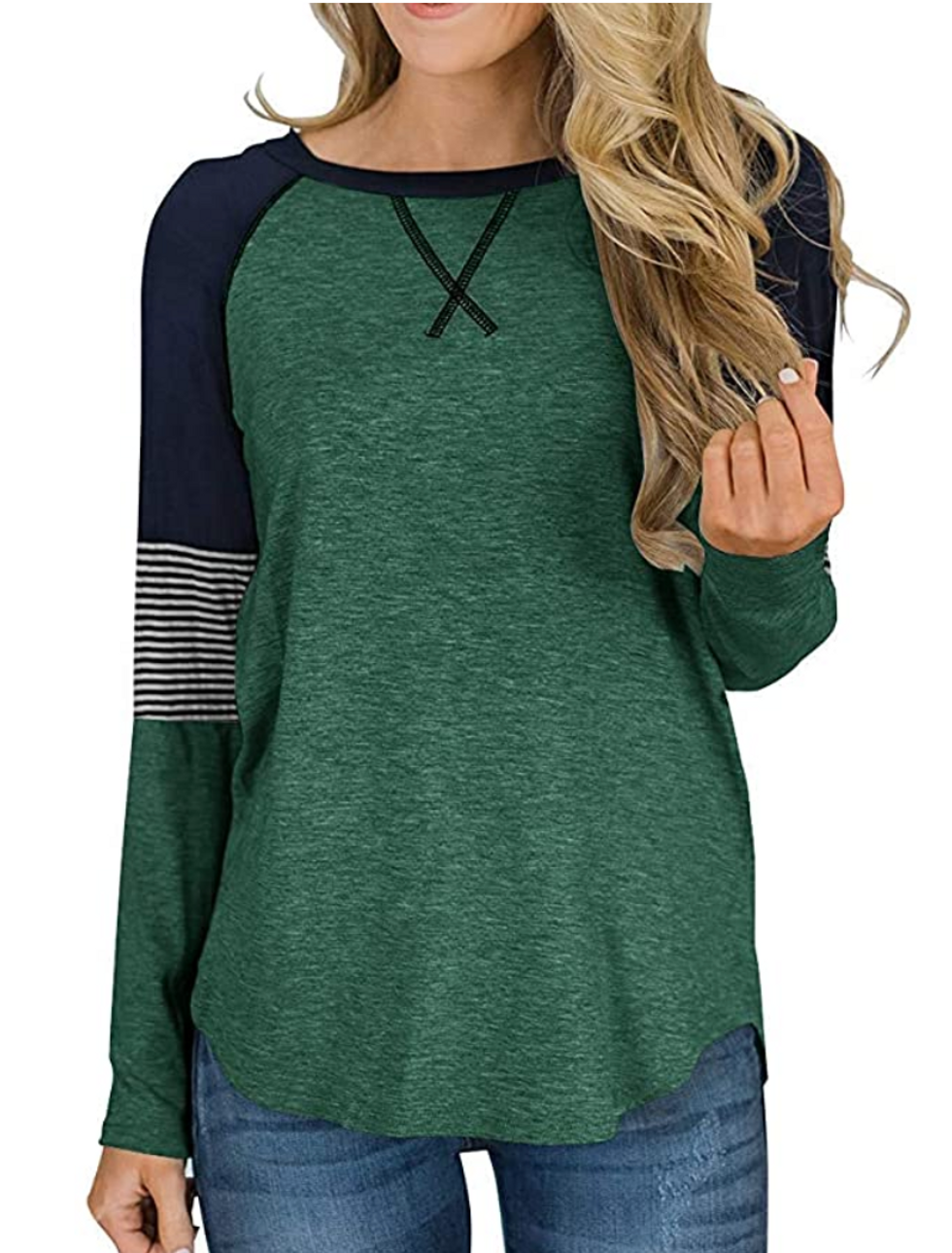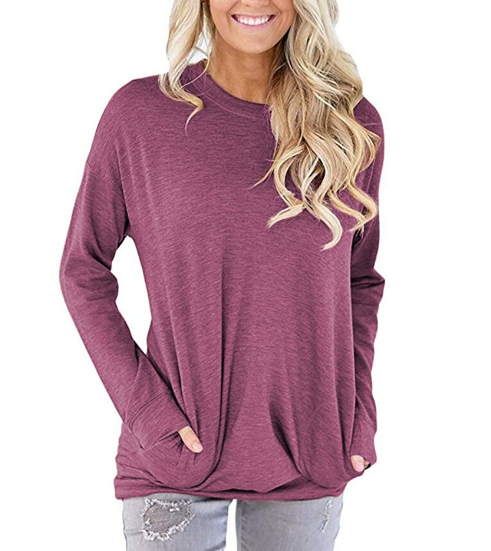 You can’t go wrong with this long-sleeve tee, as many reviewers gave it either four or five stars. Pair it with some leggings for a day spent typing away on your laptop, or even throw on a pair of sweats. And with literally dozens of colors to pick from, you truly can’t go wrong.
