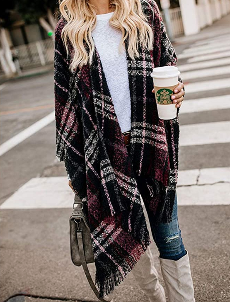 Plaid will never go out of style — I think I’ve even seen a few cave paintings where the stick figures are wearing it — which means you’ll be able to wear this oversized cardigan for years to come. It’s big and slouchy to keep you cozy in the cold weather, while the fringe on the bottom is a cute touch. Choose from colors like wine, orange, blue, and more.
