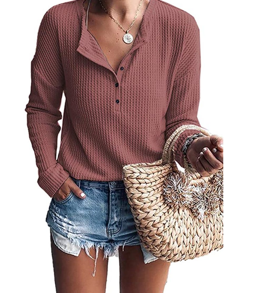 Why do you need this waffle-knit top? First of all, it comes in a ton of rich shades that complement any style. And for two, it is the perfect base layer underneath a flannel shirt, denim jacket, or even just a hoodie. You can also dress it up or down depending on where you’re going — pair it with slacks for the office or shorts for happy hour.