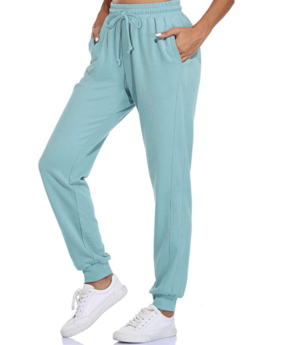 If your current work-from-home wardrobe consists of black, grey, and more black, you’ll definitely want to check out these sweats. They’re available in trendy pastel shades — from sky blue to rusty pink — and they’re made from a cotton blend with a hint of stretchy spandex for comfort. Just make sure to order one size up for a baggy fit.