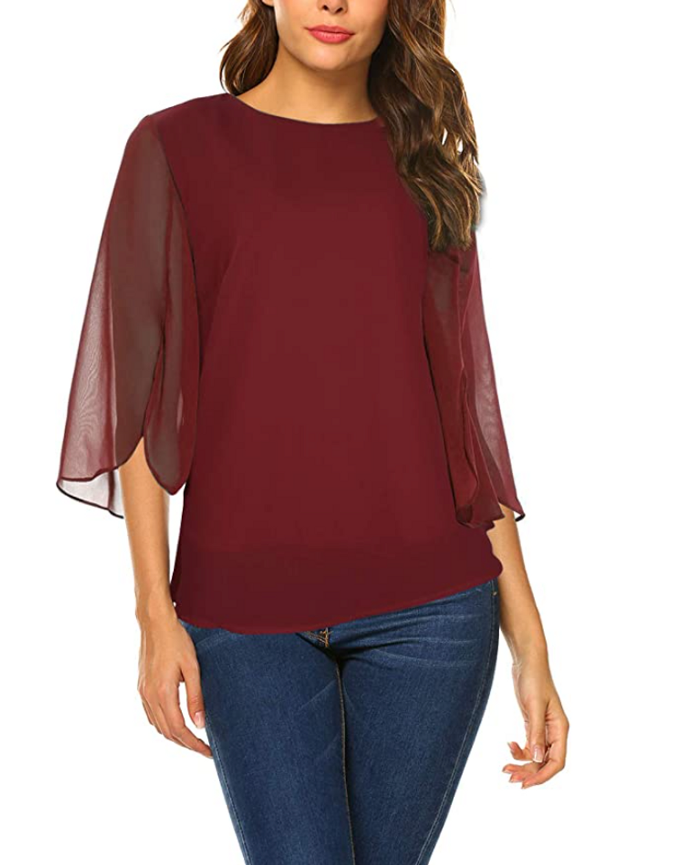 It doesn’t matter whether you’re working from home or working on a second margarita at happy hour — this chiffon blouse has you covered. The breezy sleeves are lightweight so that you don’t get too hot, and it’s made from polyester that’s oh-so-soft. Choose from colors like wine, purple, blue, and others.