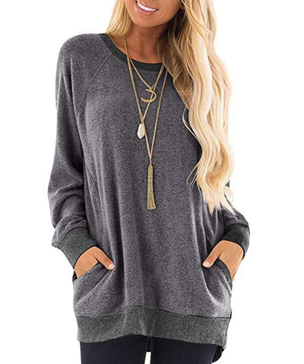 I’ve spent more money on Amazon than I care to admit, but you know what I will tell you? This is the softest tee out of the hundreds I’ve purchased. It has a loose, drapey fit that gives me room to breathe without being shapeless, while the pockets at the bottom keep my hands warm when I’m chilling on the couch. And if you’ve got a video call coming up? Feel free to dress it up with a denim jacket — your boss won’t be able to tell the difference.
