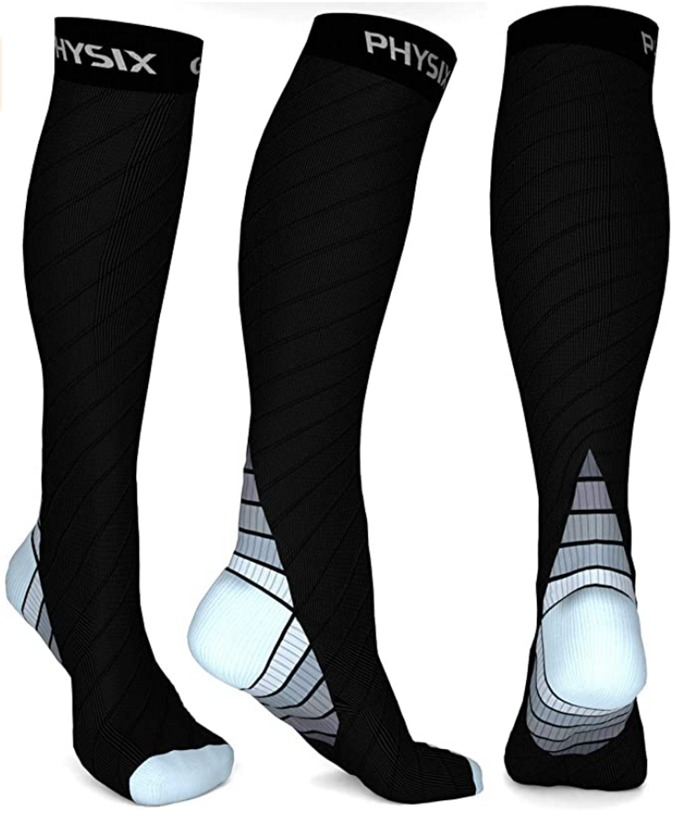 I’m about to sound really lame, but sitting at my desk for eight hours a day leaves my legs feeling sore — which is why I like to wear these compression socks. They help stimulate blood flow so that my legs don’t start to ache, and they also feel great if you wear them while running. Plus, there’s even some extra support built into the arches and heel.