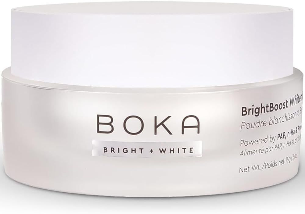 Brighten your smile without the sensitivity of traditional strips with Boka Teeth Whitening Powder, a nano-hydroxyapatite alternative that strengthens enamel and polishes stains using a unique, water-free formula.