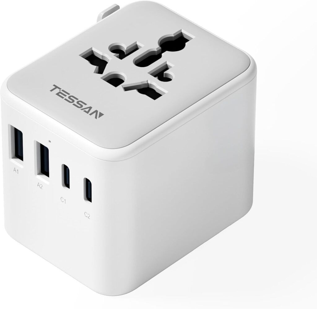 Never get caught without a charge abroad again with the TESSAN Universal Travel Adapter. This compact essential covers over 224 countries and features two USB-C and two USB-A ports, allowing you to charge five devices simultaneously. It’s a sturdy, space-saving lifesaver for any jet-setting Brit looking to stay connected worldwide.