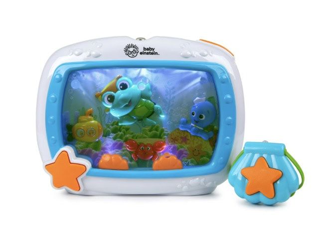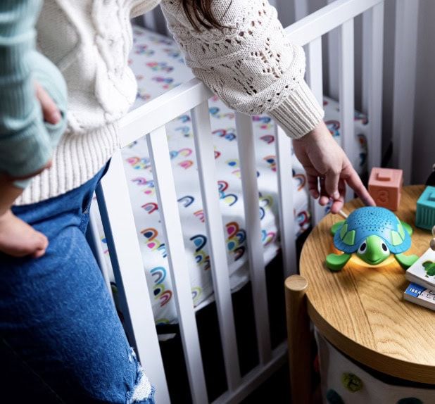 This crib soother has a “Drift Off” mode that slowly dims everything down as your baby falls asleep!