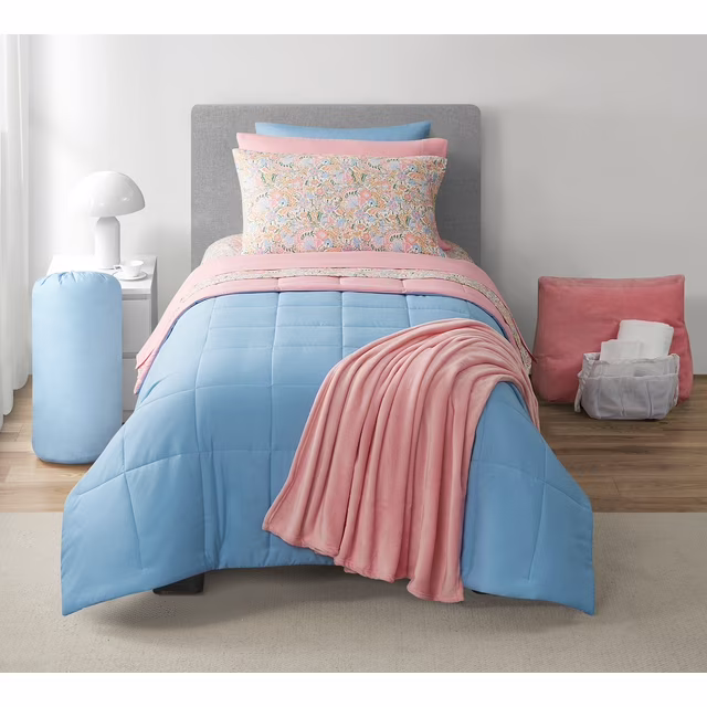 Moving into the dorm? This Mainstays 14-Piece Back to Campus Bed in a Bag Comforter Set is your one-stop shop for instant cozy comfort and style! It’s got everything: comforter, sheets, towels, a shower caddy (score!), and even a backrest pillow for those late-night study sessions or binge-watching. Transform your bland dorm bed into a vibrant oasis, all in one convenient bag!