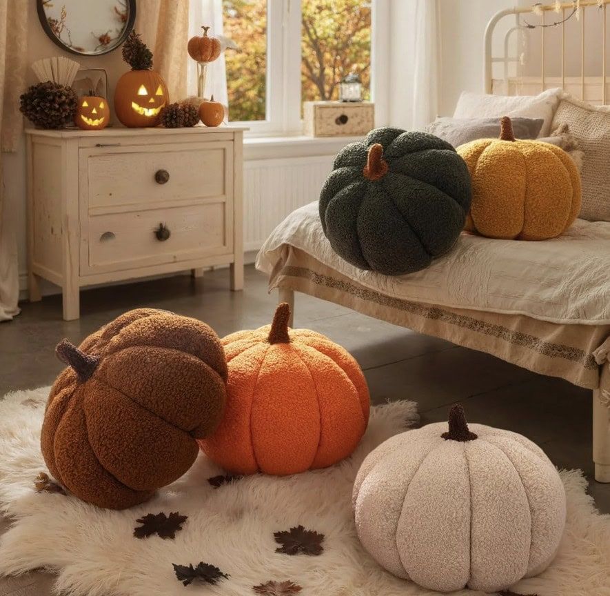 These pumpkin throw pillows are a cozy, whimsical way to bring the spirit of fall indoors. With their plush 3D design and rich, textured feel, they add a fun pop of seasonal color and comfort to any couch, chair, or bed. Available in multiple autumn colors, they’re the perfect, low-effort accessory for decorating for Halloween, Thanksgiving, or simply enjoying the crisp, cool season.