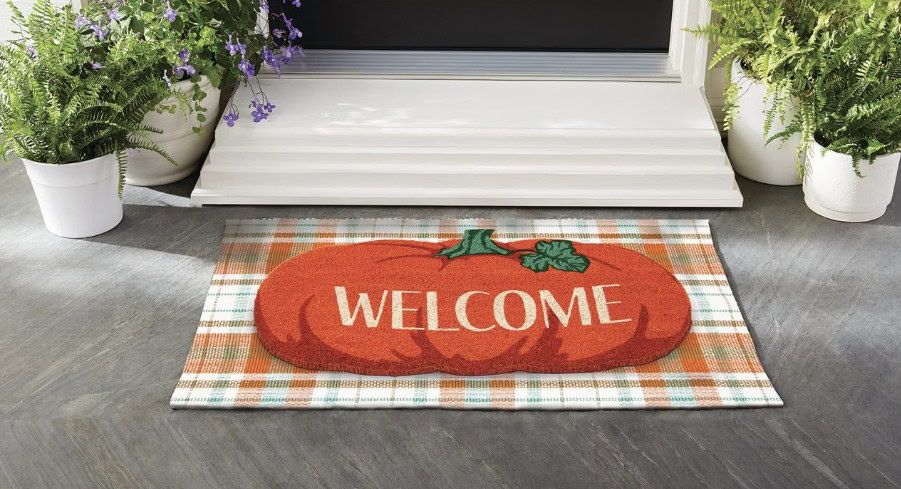 This pumpkin coir mat doesn’t just clean shoes, it throws a pumpkin party at your door!
