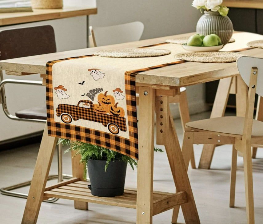 Nothing says cozy fall vibes like a table runner decked out with pumpkins, playful ghosts, and that classic buffalo plaid. It’s like a warm hug for your dining room—perfect for Thanksgiving feasts, Halloween parties, or just everyday autumn chillin’. Soft, durable, and ready to bring those harvest feels year after year.