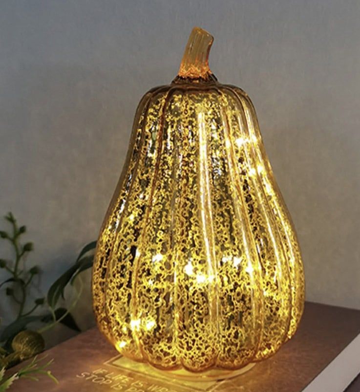 Create a charming fall ambiance with this mercury glass pumpkin light. Designed for easy battery operation, it emits a soft, flickering glow that instantly adds warmth to any space. The antique mercury glass finish gives it a timeless rustic appeal, making it perfect for Halloween, Thanksgiving, or even winter holiday decor. This light-up pumpkin is an effortless way to brighten your home with seasonal spirit.