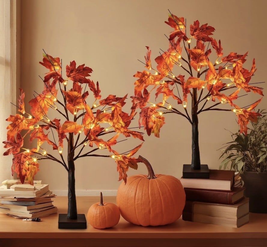 Fall just got a whole lot cozier with these glowing maple leaf trees! Designed with lifelike leaves and warm LED lights, this duo adds a romantic, soft glow that feels like a hug from Mother Nature herself. Shape the branches however you like to craft your perfect little autumn oasis — perfect for your next dinner party, quiet nights in, or just everyday seasonal charm. Your home’s new favorite fall accessory!