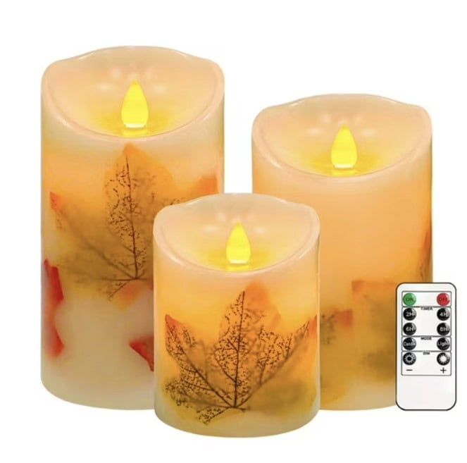 Set the mood with a cozy 3-piece flameless maple leaf LED candle set—perfect for fall nights.