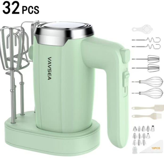 This electric hand mixer is a complete kitchen sidekick, loaded with a whopping 32 accessories to tackle any recipe. Its powerful motor and multiple speeds make it a total game-changer for mixing, blending, and whipping. With the convenient storage base, everything stays neat and tidy.