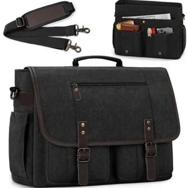 \Rugged, waterproof, and basically a résumé in satchel form, this vintage canvas messenger bag fits a 17” laptop and every last shred of hope your unemployed friend is clinging to. With enough pockets to organize dreams and disappointment alike, it’s perfect for interviews, coffee shop co-working, or just looking important at a Panera.