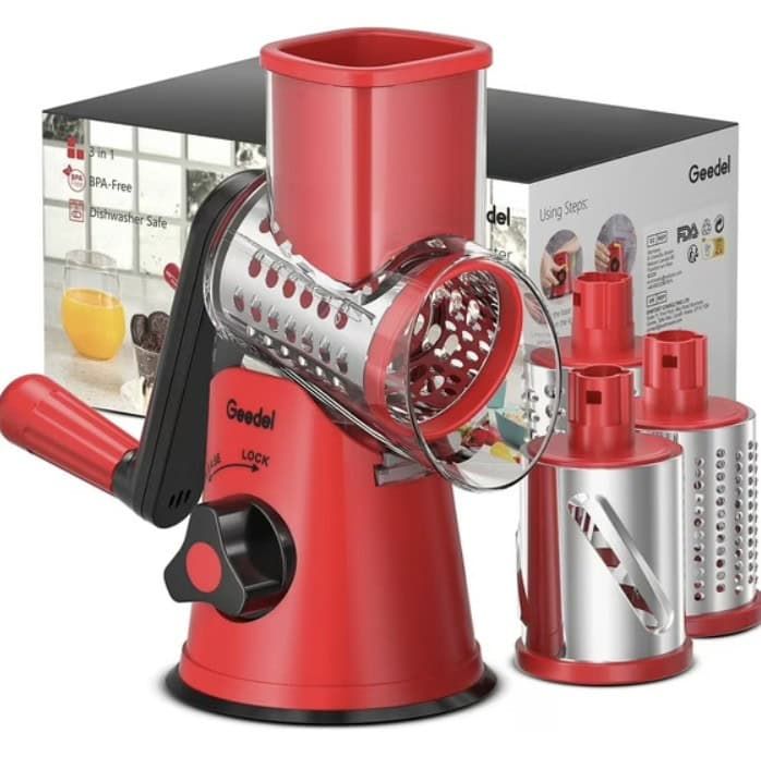Meet your new prep MVP. This rotary cheese grater shreds, slices, and grinds like a kitchen boss—with three interchangeable blades, a powerful suction base, and zero hand-risk. It’s BPA-free, easy to clean, and dishwasher safe. Whether it’s cheese, nuts, or veggies, this gadget gets it done fast! Grab it before it’s gone.