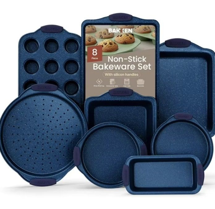 This baking pan set is the MVP of multitasking. Eight different pans mean you’re prepped for cupcakes, casseroles, cookies, and more. The blue nonstick coating? Gorgeous. The silicone handles? Slip-proof and oven safe. These trays stack like a dream and clean up without drama. This set delivers pro-level results—no culinary degree required.