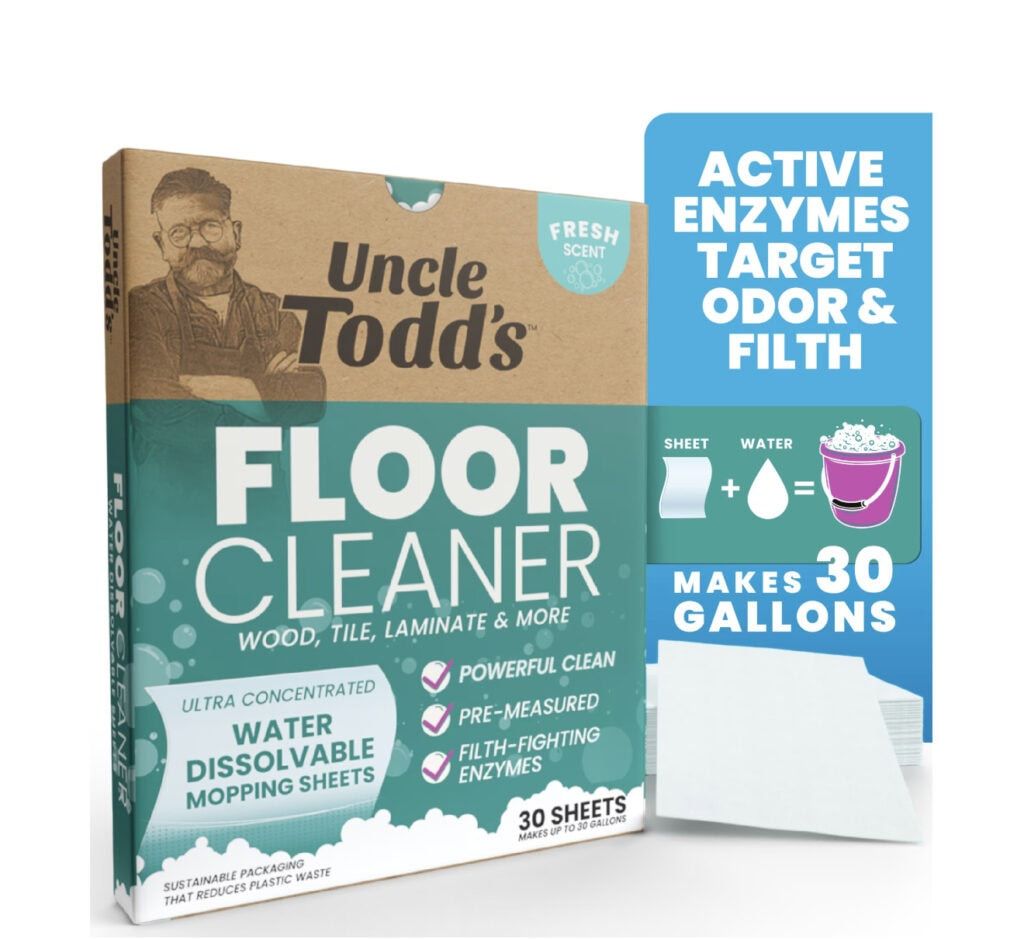 Ditch the bulky plastic with Uncle Todd’s Floor Cleaner Sheets. 🧼🌱