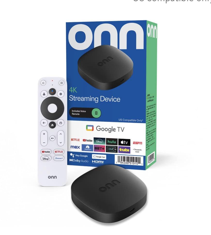 Add 4K Google smarts to any screen for just $19.88 with the onn. Google TV 4K Streaming Box.