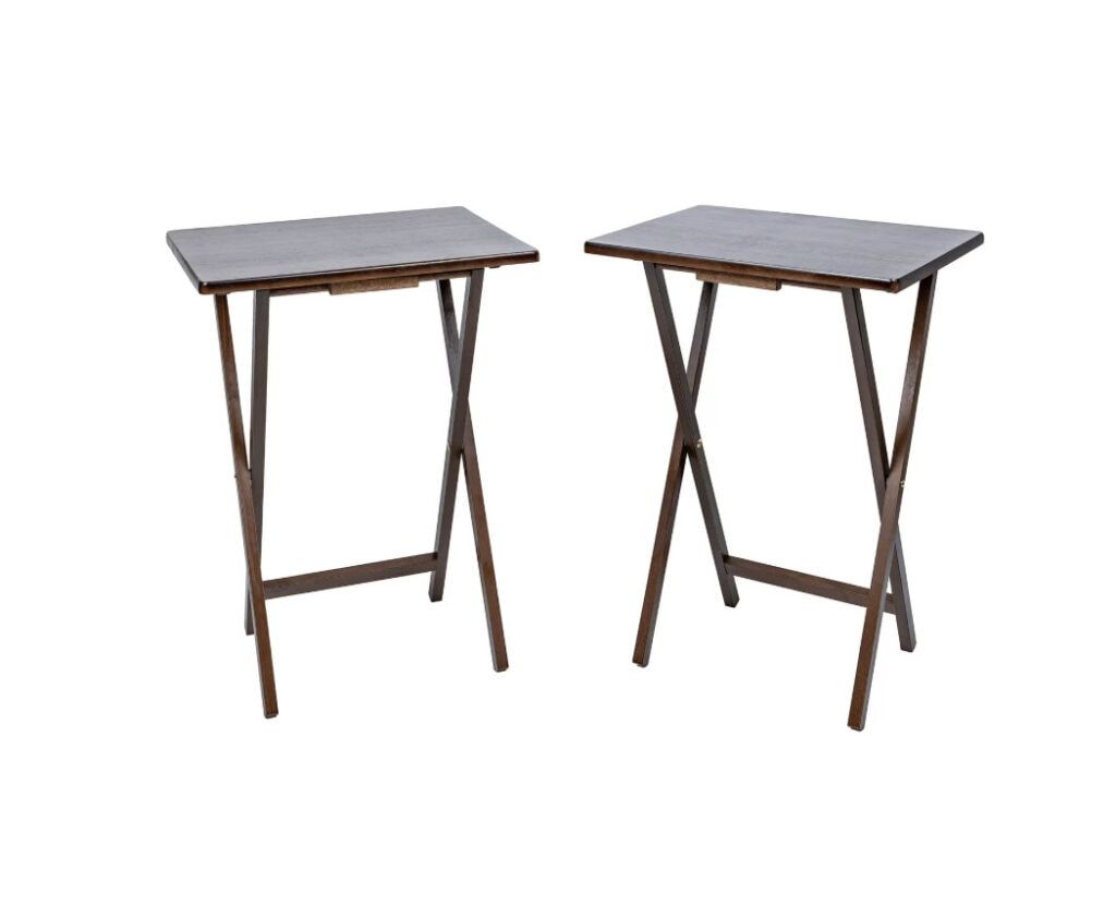 Upgrade your “dinner and a movie” game with the ultra-convenient Mainstays Indoor Single Folding TV Tray Table Set.