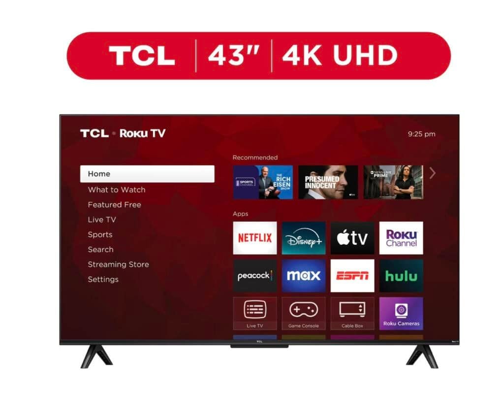 Bring 4K clarity to tight spaces with the sharp and smart TCL 43″ Class S4 4K UHD HDR Roku Smart TV.