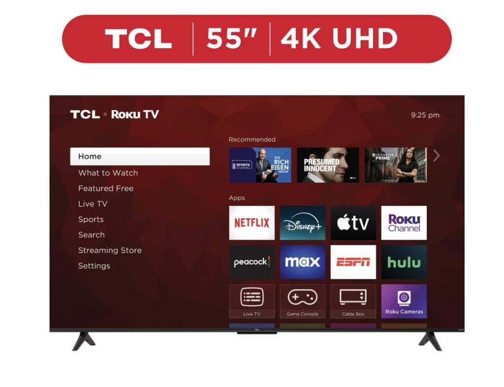 Grab the neighborhood’s favorite screen size for an amazing price with the TCL 55″ Class S4 4K UHD HDR Roku Smart TV.