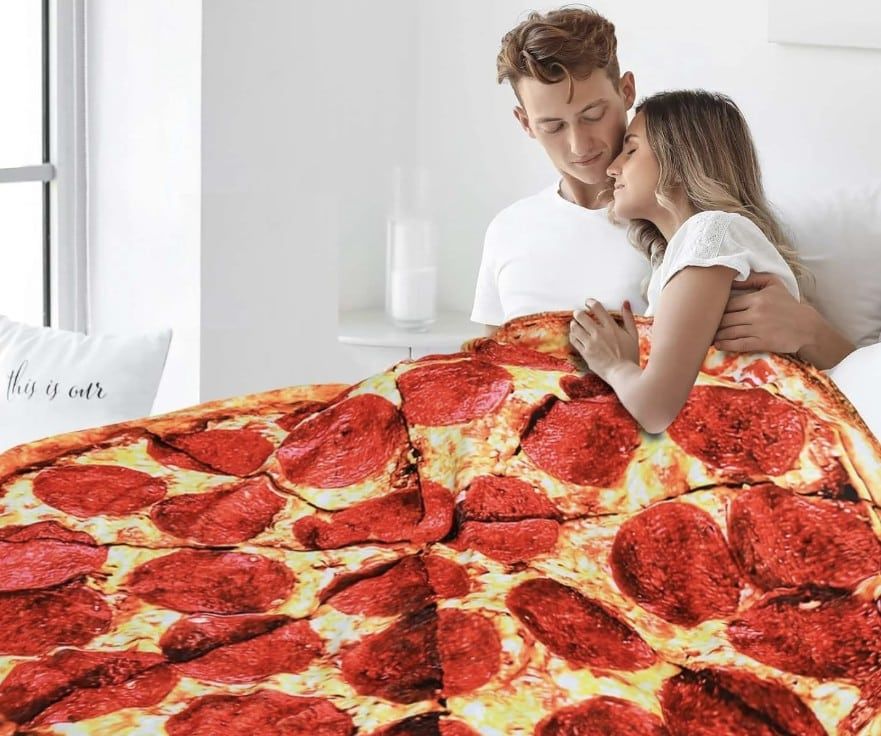 The pizza blanket is soft, ridiculous, and guaranteed to pass through a dozen hands before someone finally keeps it!