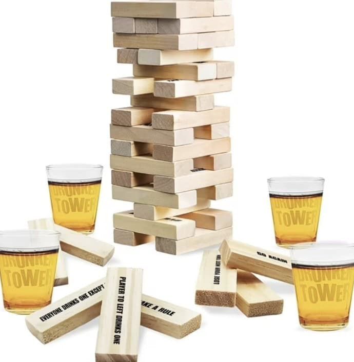 This Tumbling Tower drinking game brings 60 solid wooden blocks and four shot glasses for epic dares and sips. Perfect for adults who like their parties wild and kids who just want to stack stuff without the booze (sorry, kiddos). Durable enough to survive the family feud, and portable enough to crash your friend’s next party.