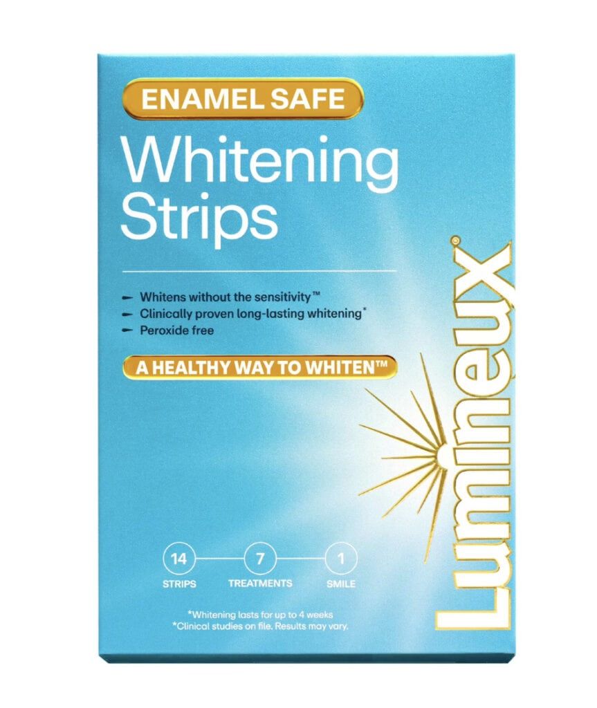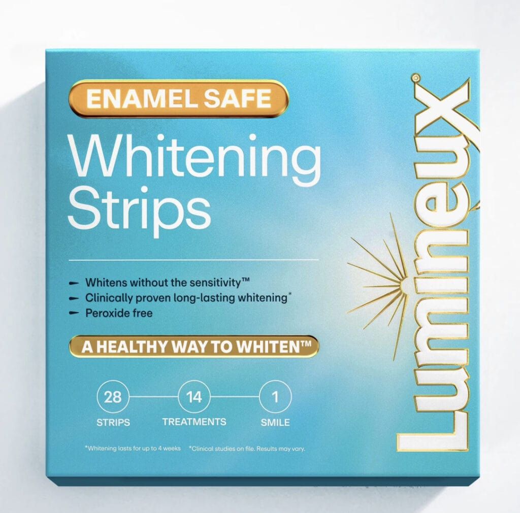 Whiten without the wince using Lumineux Enamel-Safe Peroxide-Free Strips 14-Pack—dentist-formulated for sensitive teeth at 15% off.
