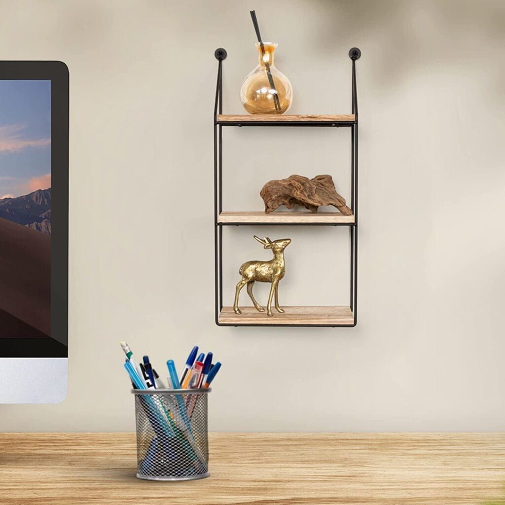 Reviews say, “These shelves are great! They are mounted in my private bathroom and are just deep enough to give a sturdy area for my items but also shallow enough to where I don’t have to dodge them when walking/standing near them. Although they were a little tricky to get mounted, they were a great investment! I would recommend this purchase to anyone who is looking to display small items on a wall – would be great for any room in the house!”