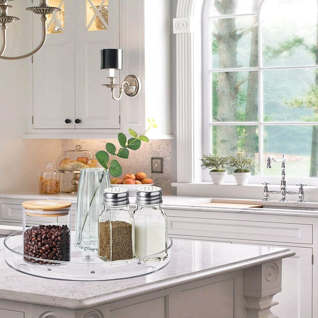 Lazy susans shouldn’t be ugly–and this one is proof of that. The two-pack (that’s right, it comes with two) costs less than $25 and is a gorgeous way to display your kitchen items on the counter or kitchen table.