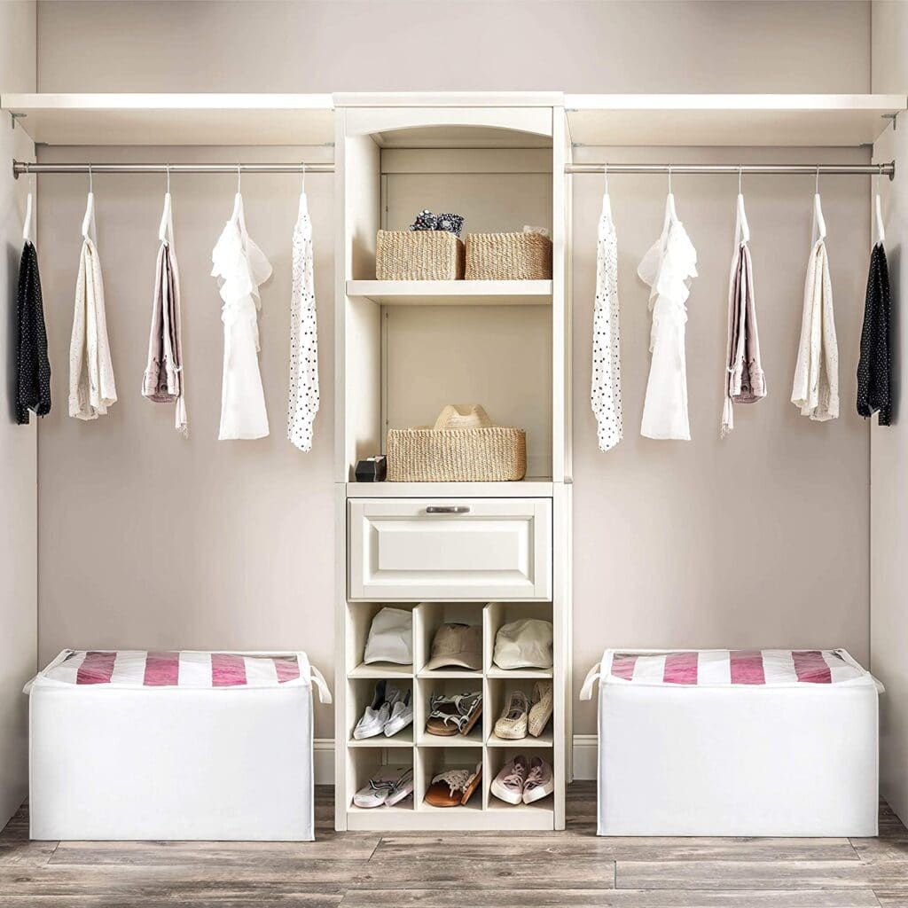 To keep your clothes in tip-top shape while also making the most room possible in your closet, use these space-saving bags. They’re very similar to the vacuum bags that I mentioned earlier but they hang!