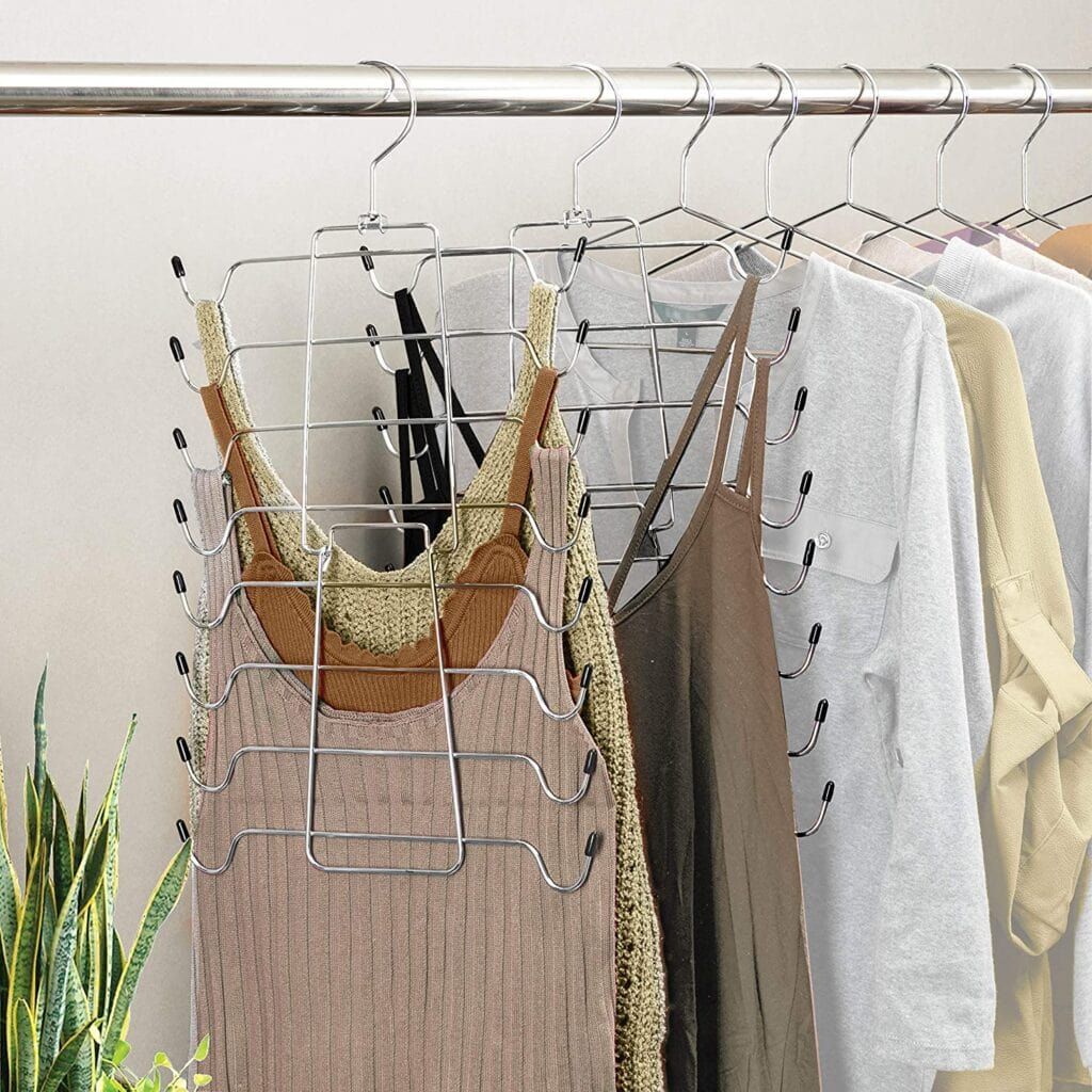 If you have a lot of tank tops or spaghetti strap shirts, you’re going to love these hangers. Each one can hold up to eight different shirts while taking up virtually no room in your closet. And for only $8 a hanger, they’re a steal. That means 32 shirts will be hung up in your closet with ease.