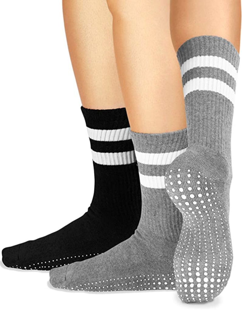 These grip socks are ideal to wear indoors, keeping you from slipping while walking on surfaces like wood floors or tiles, as well as keeping your feet toasty warm.