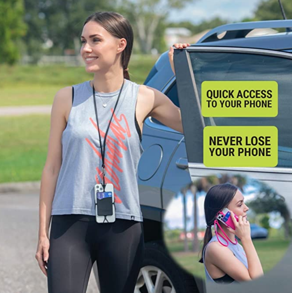 This Universal Neck Phone Holder Features a Card Pocket