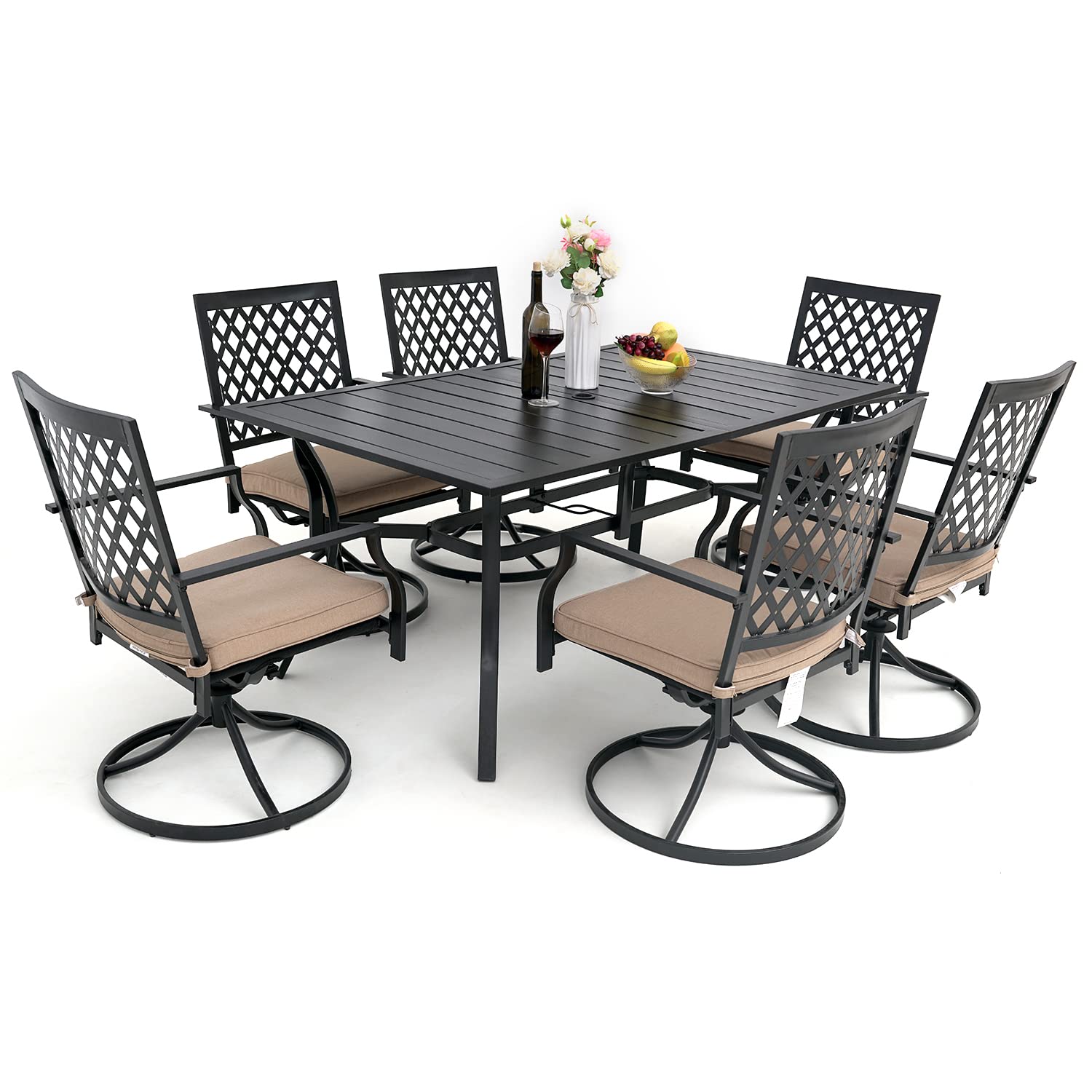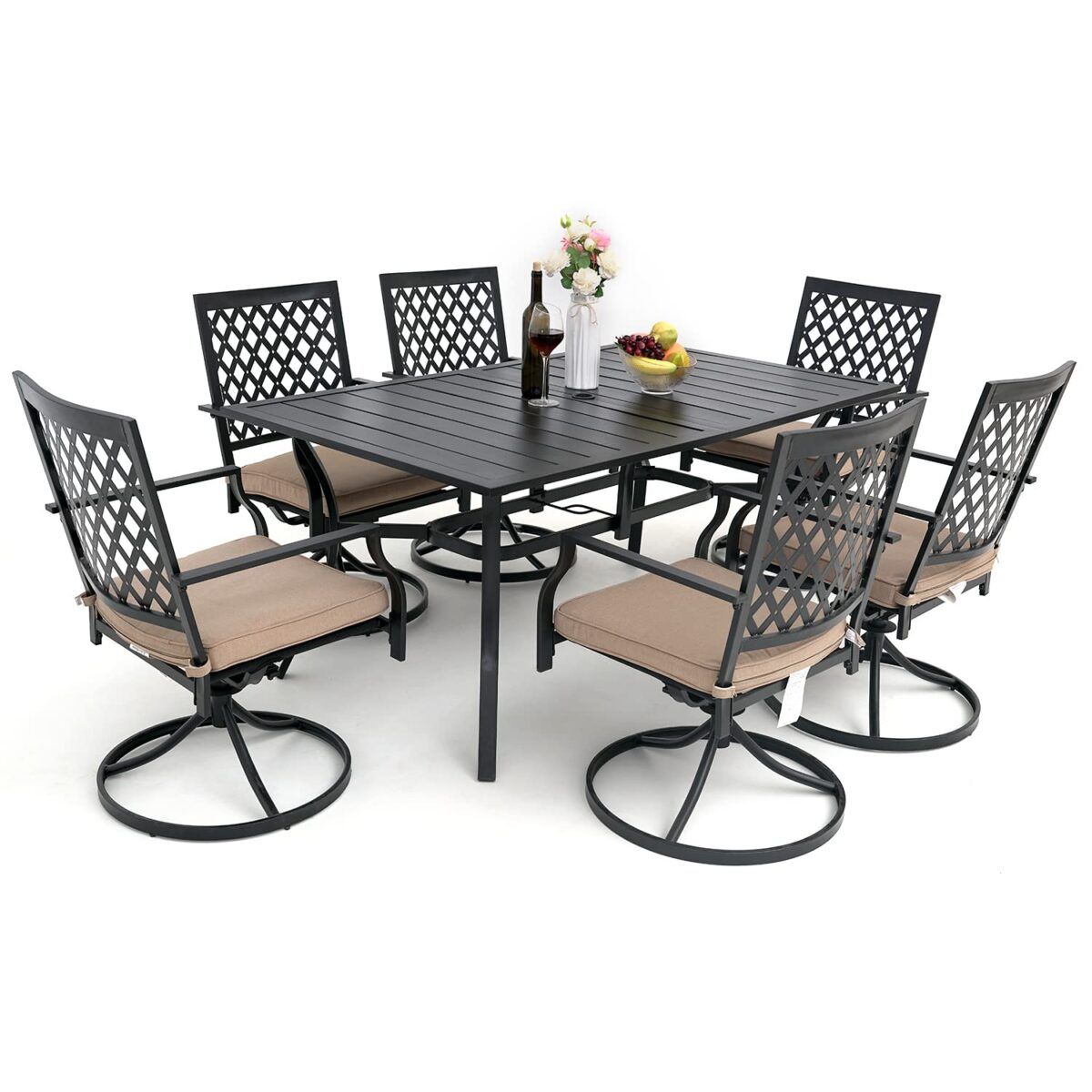 The 7 Pieces Outdoor Patio Dining Set comes with six swivel dining chairs.