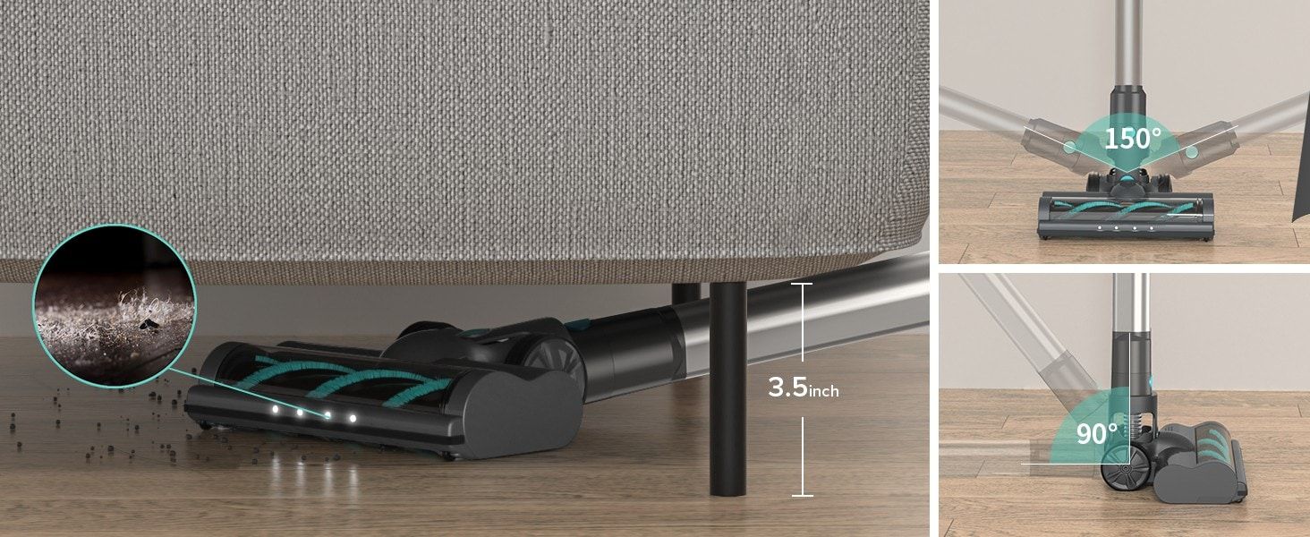 - 180° Rotating Brush & LED Headlights: Spot hidden debris and pet hair in hard-to-reach places with the bright LED lights on the vacuum brush. The flexible 180° side rotation and 90° up-down movement make cleaning around furniture a cinch.