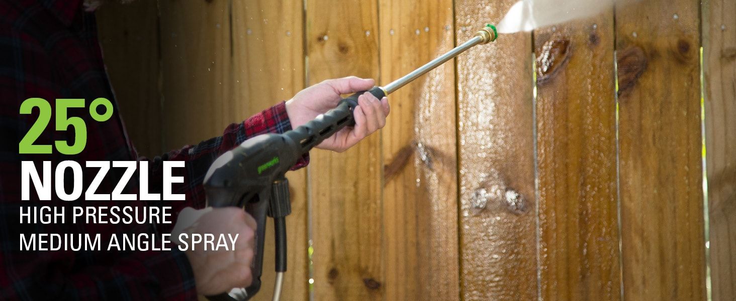 Depending on your cleaning task, choose between the two quick-connect nozzles. The 25-degree nozzle is great for general cleaning, while the soap nozzle is perfect for deep cleaning with detergent.