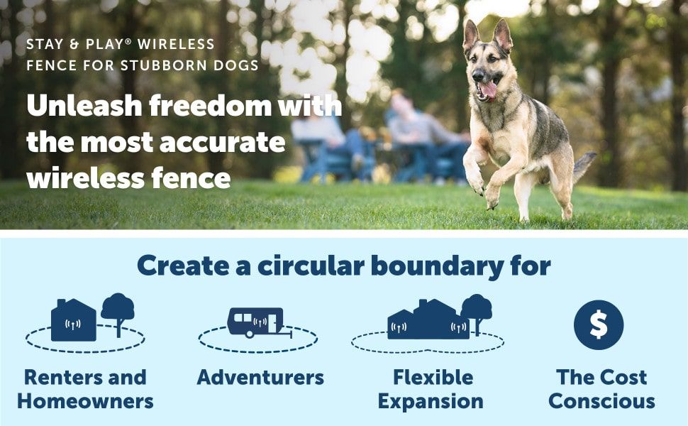 PetSafe Stay & Play Wireless Pet Fence for Stubborn Dogs – No Wire to Bury – Covers 3/4-Acre Yard – For Hard-to-Train Dogs 5 lbs. & Up – Portable – From the Parent Company of INVISIBLE FENCE Brand Ratings