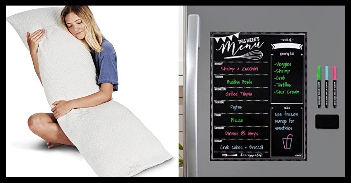 If hearing the question “what’s for dinner?” is like nails on a chalkboard for you, you’ll appreciate this magnetic dry erase menu board from Cinch. It comes with three neon liquid chalk markers with magnetic caps as well as a magnetic eraser and has dedicated spaces to write a daily menu and keep a list of items to pick up on your next grocery run.