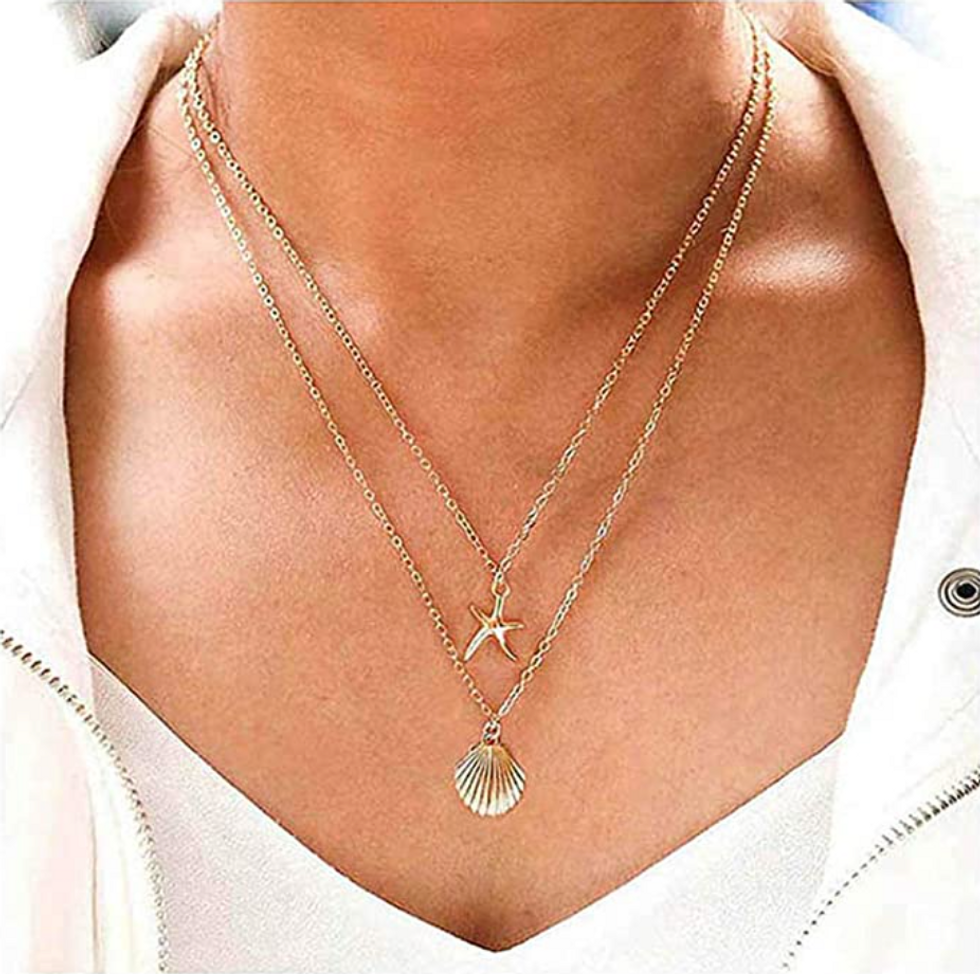 Layering necklaces are a trend that is here to stay, and what better way to get in on the trend than with this necklace? The starfish and shell are the epitome of class and style but done in an understated way, so they’ll match any outfit.