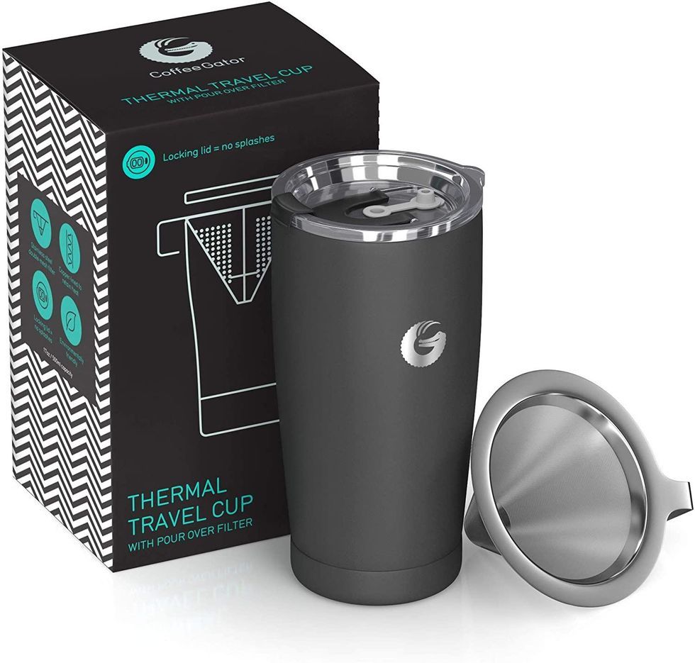 Does taking your joe to go get any more convenient than this travel mug with a pour-over filter? It’s even eco-friendly since you don’t need to use paper filters as the included filter is such a fine mesh it won’t let coffee grounds through. And it’ll keep your coffee hot for longer thanks to the military-grade stainless steel coating over a copper lining.