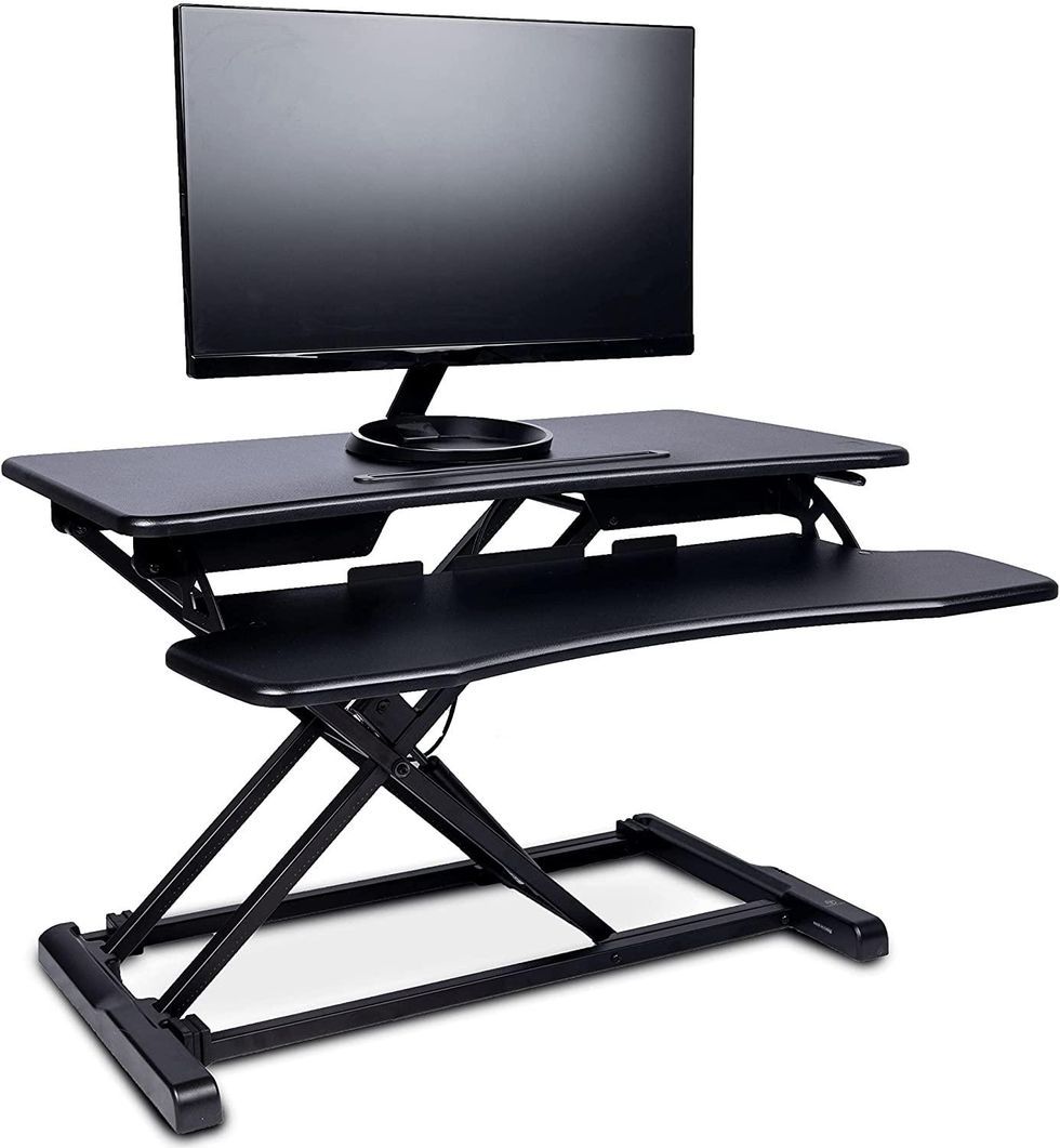 I love the versatility of a sit or stand computer workstation since it’s not healthy to sit all day. The top tier of the workstation fits two monitors or a monitor and a laptop, and the removable second tier is great for a keyboard and mouse. It gets great reviews for ease of assembly and making a great addition to your home office.