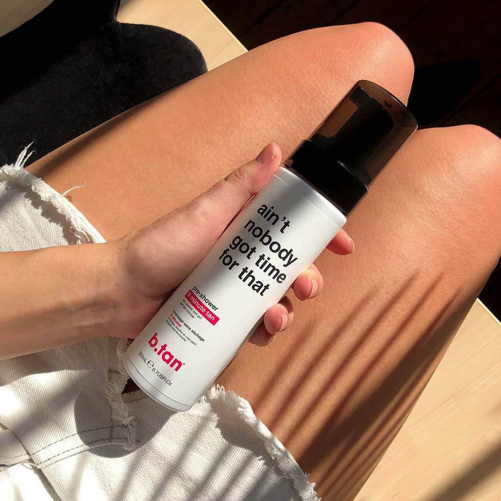 You know how you usually have to put on self-tanner then wait around for half an hour while it dries before you can get dressed or touch anything? No more with this b.tan pre-shower self-tanner! Just apply nine minutes before a shower, then rinse off the excess and you’re left with a believable, long-lasting tan.