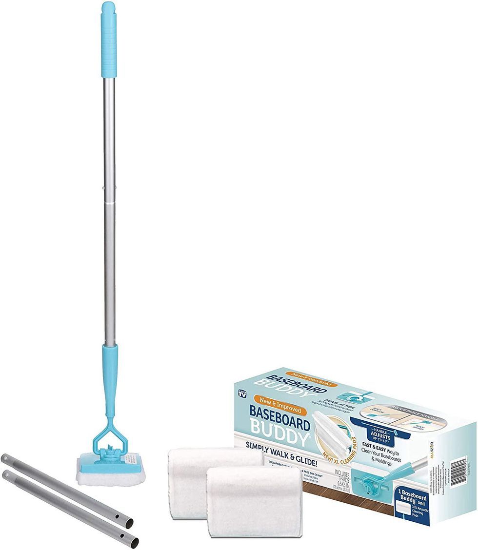 Who enjoys bending down to scrub their baseboards? Not me, that’s for sure — which is exactly why I use a tool like this one whenever they’re looking dirty. The telescopic handle lets you stay upright while you scrub, which helps keep the load off of your back and knees. Plus, the scrubber heads even contours to the shape of your molding.