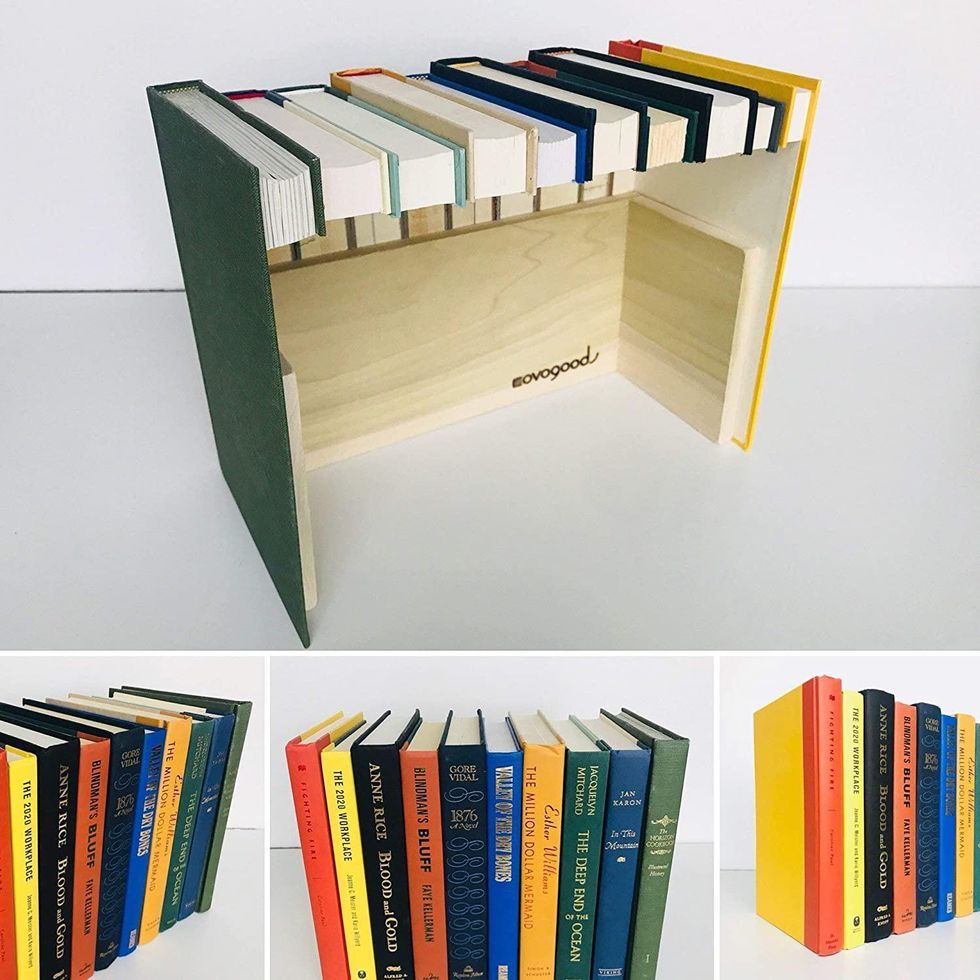 Whether you have bookshelves in your home or not, this hidden storage book box is a smart-looking addition to your home while providing a hiding place for valuables. The outside is made from real vintage books and sustainable wood, so it looks authentic (not fake). Another great use of this product? Hiding DVR boxes, routers, and all their accompanying chargers and cords. Smart!